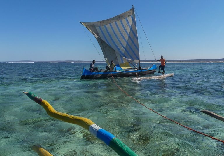 Depuis Ramena, au Nord de Diego-Suarez, on embarque sur un boutre traditionnel pour traverser la baie et se faufiler dans une petite passe pour accéder aux côtes