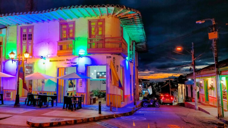 Quindío, au pied du parc national naturel des Nevados. La petite ville de Salento et des ruelles entrecroisées se décline de toutes les couleurs sur les façades