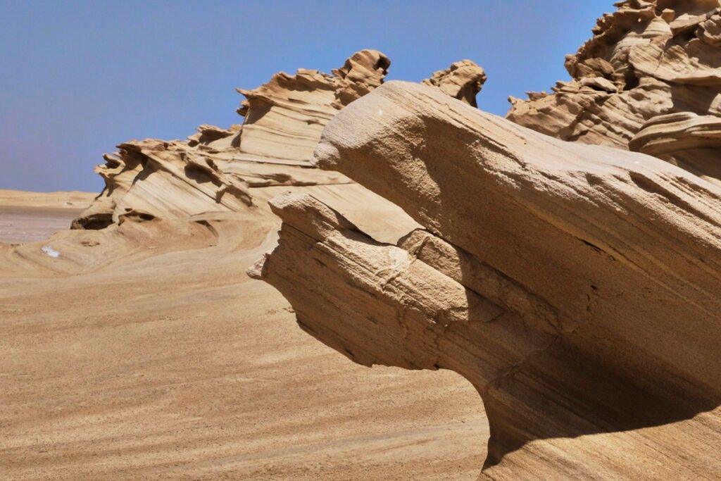 Les dunes fossiles d’Al Wathba constituent un phénomène naturel peu commun : le sable, sculpté pendant des milliers d’année par le vent et l’eau, forme à cet endroit des structures esthétiques étonnantes aux motifs plissés et découpés, au beau milieu du désert. C’est un véritable musée à ciel ouvert dans le sens où ces dunes fossilisées témoignent d’un temps révolu, une époque où la terre a subi des transformations climatiques et écologiques importantes.