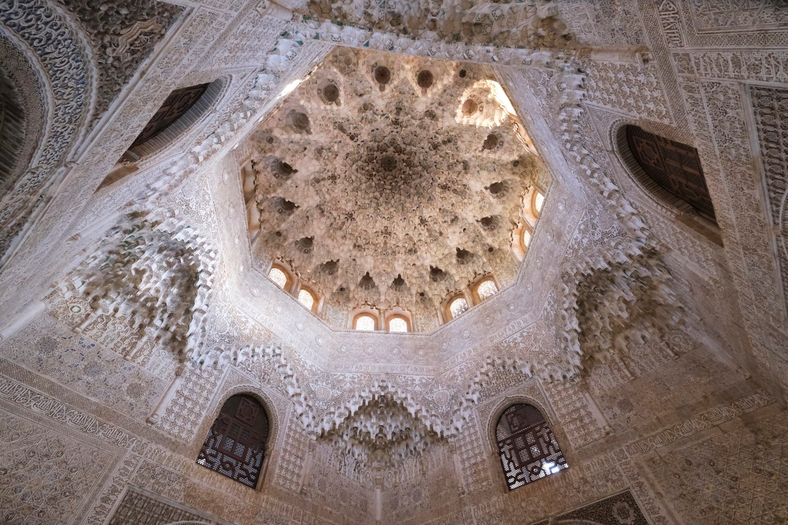 Les palais Nasrides, c’est de loin la perle de l’Alhambra. Il faut programmer sa visite à la demi-heure près pour avoir une chance d’y entrer, mais quel spectacle ! Les salles s’enchaînent les unes derrière les autres, toutes magnifiques, avec des décorations en stuc ou en bois absolument incroyables de finesse et de beauté. On a le regard qui passent du sol au façades aux plafonds monumentaux, sans répit, pour le plaisir des yeux.