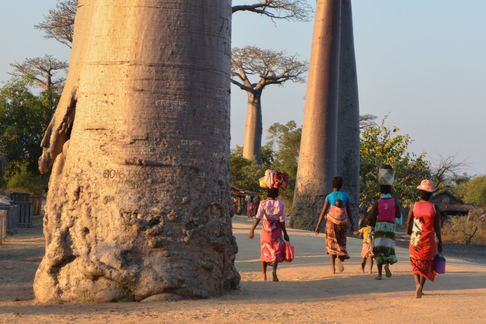 Oui ces géants sont impressionnants, magnifiques, étonnants et créent une ambiance savane africaine géniale. Tout d’abord l’allée des baobabs, la fameuse, celle qui apparait sur toutes les brochures. Et bien cela vaut vraiment le détour car non seulement la série de baobabs est exceptionnelle et encore plus au coucher du soleil mais également parce que, jusqu’à aujourd’hui, le lieu est resté authentique, avec un petit village à ses pieds et presque aucun signe de tourisme: pourvu que ça dure !! On peut se balader en poursuivant la piste beaucoup plus loin et mème en revenant vers Kimony Beach pour découvrir de nouveaux paysages et d’autres villages au milieux de superbes spécimens.
